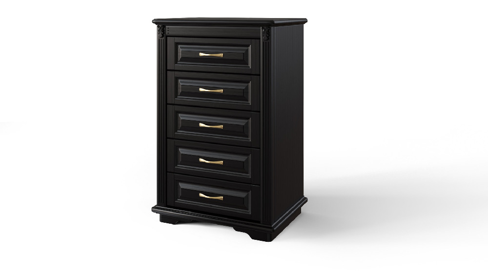 Универсальный предмет мебели — изысканный и функциональный комод — колонка «Палермо» занимает немного места в интерьере спальни или домашнего кабинета, благодаря своим компактным размерам. Пять вместительных выкатных ящиков оснащены телескопическими направляющими в базовой комплектации и направляющими с системой довода опционально. Разнообразие цветовых решений на массиве бука и ясеня позволяет легко дополнить интерьер любых цветовых решений. Сборка не требуется.