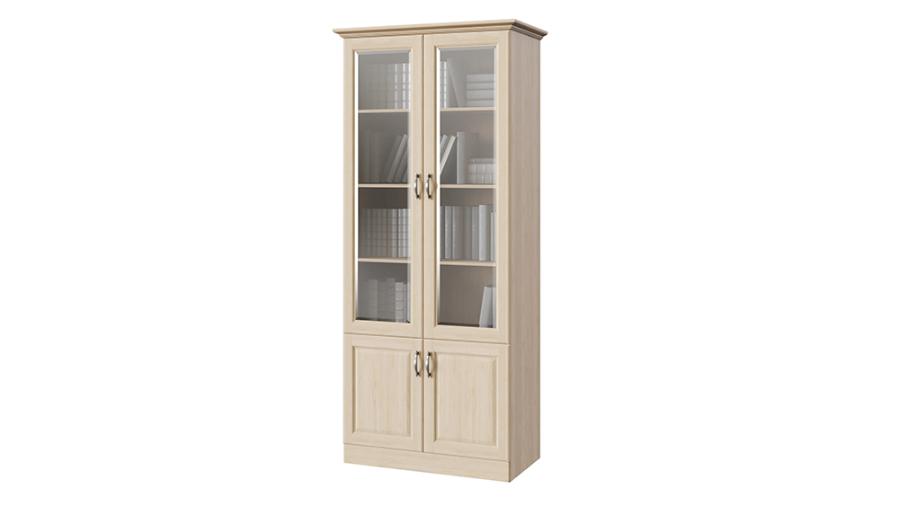 Классический шкаф библиотека Эдем с двумя створками выполнен из натурального массива дерева. Он станет идеальным дополнением вашего кабинета, ведь его оптимальный размер позволит навести порядок в ваших вещах и документах, но при этом он не займёт много места в комнате. А благодаря прозрачному стеклу с фацетом в дверцах шкафа останется визуально больше пространства и света в интерьере. В производстве использованы только качественные комплектующие, обеспечивающие плавное и бесшумное закрытие дверей. Подобрать изделие, идеально подходящее под ваш индивидуальный интерьер, вам позволит широкая цветовая палитра. Шкаф может быть изготовлен полностью из натурального массива дерева бука или ясеня. Даже полки шкафа сделаны из целостного массива, что делает вид шкафа более презентабельным и добротным. При желании немного удешевить изделие, мы можем изготовить боковины шкафа из ЛДСП. Обращаем ваше внимание, что такое решение никак не повлияет на визуальный вид товара. Внешние габариты библиотеки: 8 см. к ширине по внешним габаритам карниза. Требуется сборка.