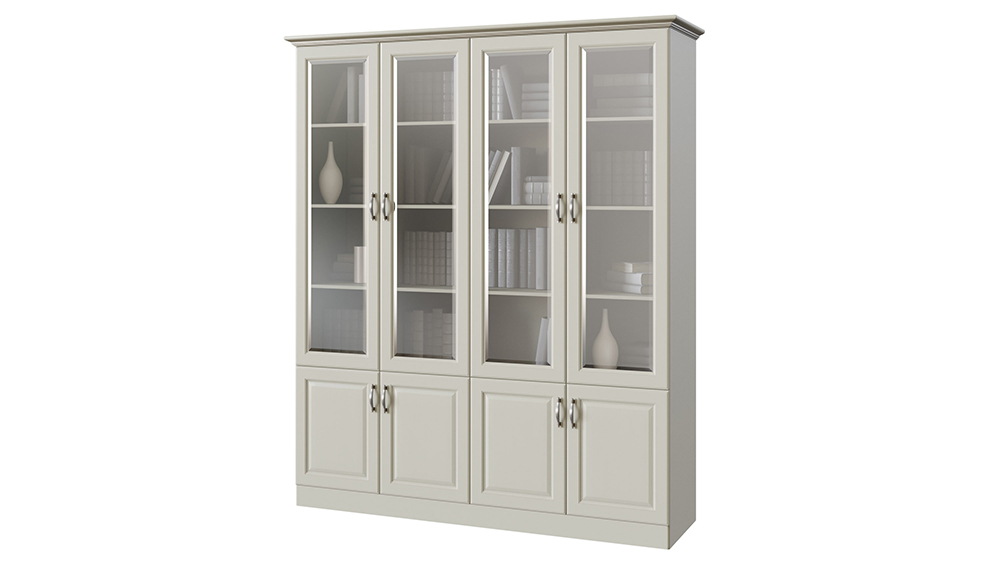 Четырёхстворчатый шкаф библиотека Эдем выполнен в актуальном классическом стиле. Подойдёт для людей, которые ценят порядок и чистоту. Благодаря прозрачному стеклу с фацетом в дверцах шкафа можно будет разглядеть все дорогие вашему сердцу книги и предметы декора, которые вы не хотели бы прятать к закрытый шкаф, но при этом они будут защищены от попадания пыли. Классический стиль шкафа подчеркнёт спокойный и стабильный нрав своего обладателя. А благодаря широкой цветовой палитре вы сможете подобрать шкаф-библиотеку, идеально подходящую под ваш интерьер и настроение. Шкаф может быть изготовлен полностью из натурального массива дерева бука или ясеня. Даже полки шкафа сделаны из целостного массива, что делает вид шкафа более презентабельным и добротным. При желании немного удешевить изделие, мы можем изготовить боковины шкафа из ЛДСП. Обращаем ваше внимание, что такое решение никак не повлияет на визуальный вид товара. Внешние габариты библиотеки: 8 см. к ширине по внешним габаритам карниза. Требуется сборка.