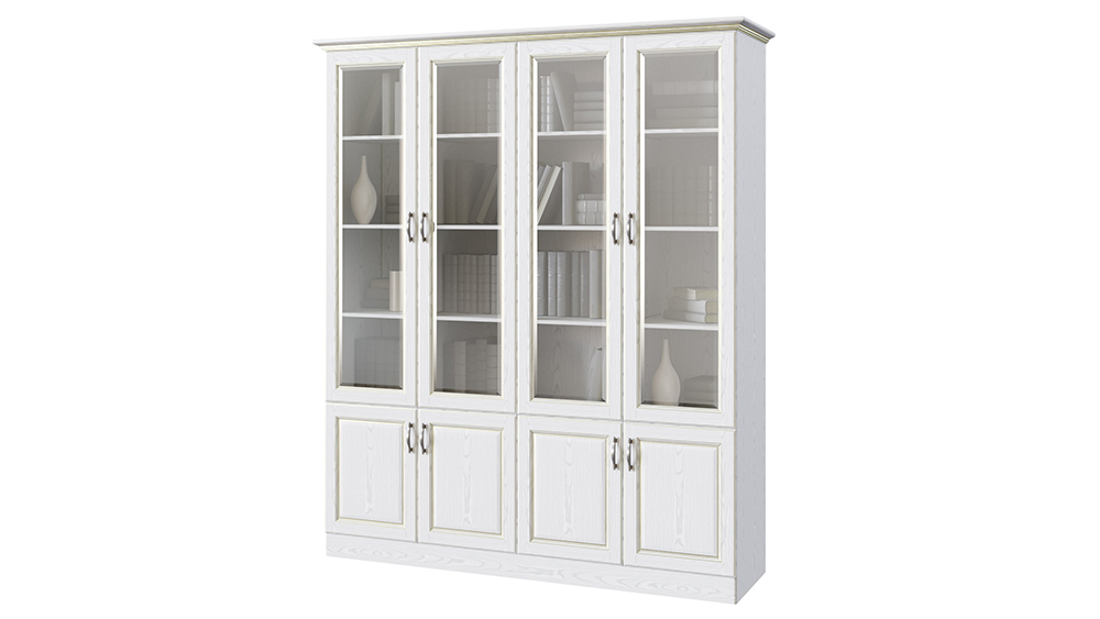 Шкаф Dreamline библиотека Эдем 4-х створчатая ясень-белый с золотой патиной 180х48х220