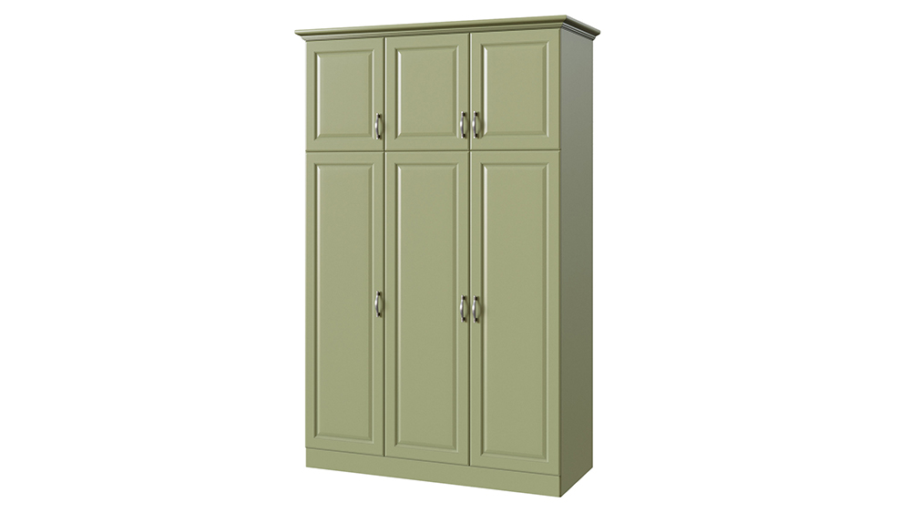 Классический шкаф, созданный в едином стиле с коллекцией Эдем — изделие без которого не возможно себе представить спальню. Корпус шкафа может быть изготовлен как из массива бука и ясеня, так и из массива мягколиственных пород, что делает его стоимость еще более демократичной. Трех створчатый шкаф имеет 3 базовые комплектации: c антресольной секцией в верхней (3-3) или нижней части (3-1) шкафа, или двумя выкатными ящиками (3-2) в нижней части шкафа. Стандартно двух створчатая секция шкафа располагается в правой части шкафа. Фасады шкафа могут иметь встроенные зеркала, как на лицевой части фасада — по размеру филенчатой части, так и на внутренней стороне фасада. Распашные дверцы шкафа оснащены петлями с системой до-закрытия в базовой комплектации. В большей секции шкафа предусмотрена штанга для плечиков, а в малой секции предусмотрены 3 полки для хранения вещей. По желанию шкаф может быть оснащен любым количеством полок.