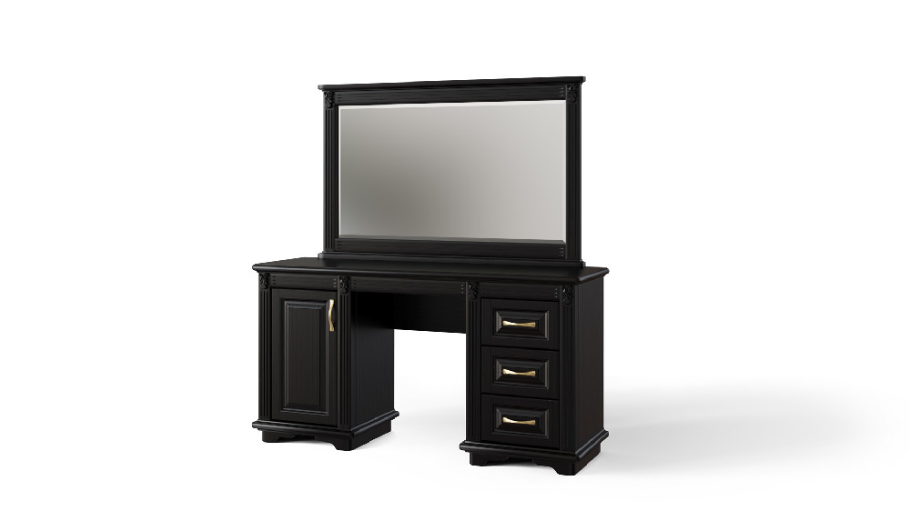 Стол для косметических принадлежностей, украшений, аксессуаров и различных приятных мелочей — Палермо ЭЛИТ, функциональное пространство для личных целей. Единое дизайнерское решение элементов декора, четко выверенные пропорции и безупречнеая функциональность! Все это создают: полноразмерное зеркало с вариантами крепления к стене или к столешнице туалетного стола, 3- выкатных ящика, 1 ниша с распашной дверцей и 1 потайной ящик под столешницей. Высококачественная ручная отделка столика Палермо, как и всей остальной мебели серии Палермо, в полной мере передает любовь и теплоту с которой мастера DreamLine создают мебель. Сборка не требуется.