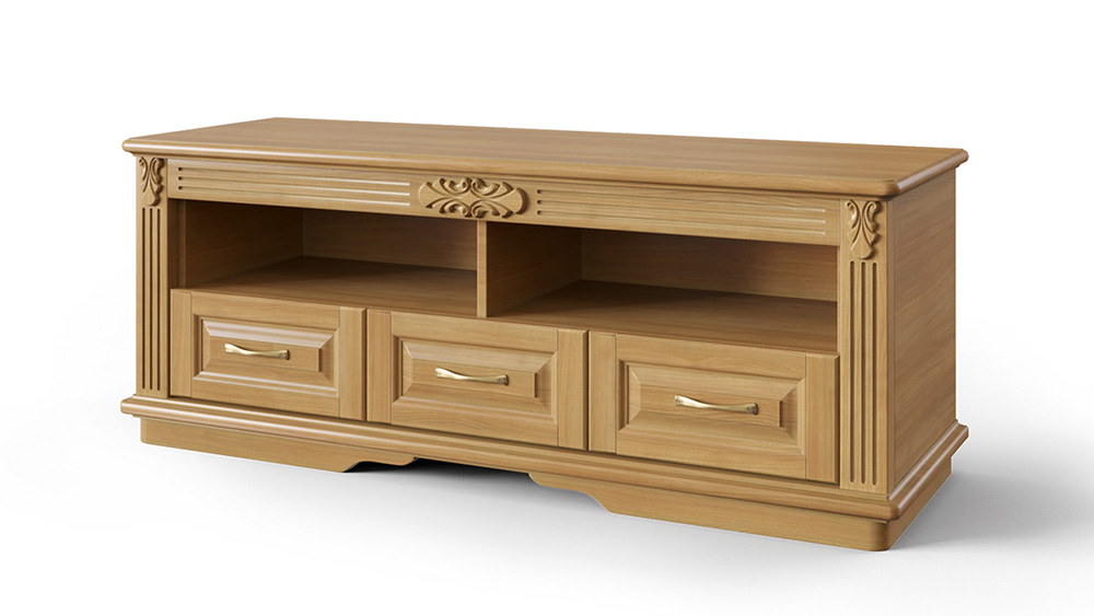 Многофункциональная тумба из 100 % массива древесины бука или ясеня, оснащена тремя выкатными ящиками, центральная секция представляет собой две вместительные ниши для мультимедийных устройств . Все внешние поверхности изготавливаются из цельноламельного щита собственного производства. Тумба покрывается пенополиуретановыми лакокрасочными материалами устойчивыми к механическим и термическим воздействиям. Гарантия — 24 месяца. Сборка не требуется.