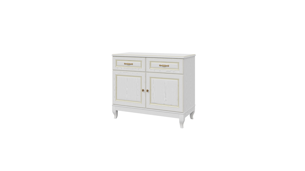Комод Греденция Dreamline Эдем 2 Лайт ясень-белый с золотой патиной 106х50х90