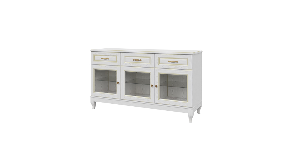 Комод Греденция Dreamline Эдем Лайт (со стеклом) ясень-белый с золотой патиной 160х50х90