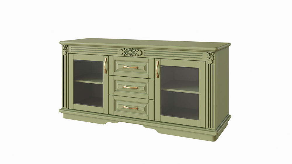 Комод Греденция Dreamline Палермо (3 ящика со стеклом) бук-олива 156х53х75