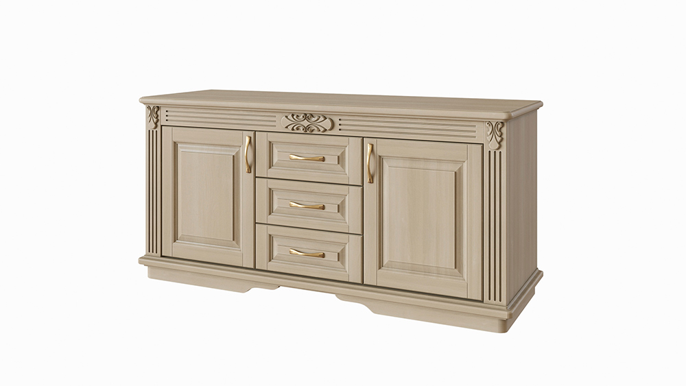 Комод Греденция Палермо на 3 ящика - это прообраз известных всем кабинета, серванта, комода и другой многофункциональной мебели. Эта мебель изготавливается из массива бука или ясеня на ваш выбор, в классическом стиле, идеально впишется в интерьер гостиной или кабинета, в ней удобно хранить, как небольшие предметы – для этого есть 3 выдвижных ящика, так и посуду – благодаря двум вместительным отсекам с полкой.