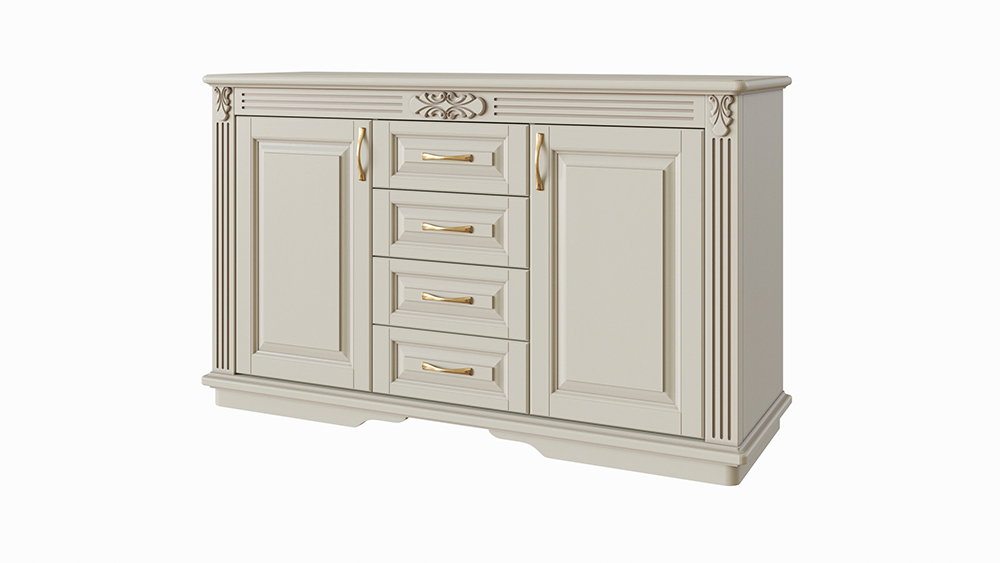 Комод Греденция Палермо на 4 ящика - это прообраз известных всем кабинета, серванта, комода и другой многофункциональной мебели. Эта мебель может быть изготовлена из массива бука или ясеня на Ваш выбор, в классическом стиле, идеально впишется в интерьер гостиной или кабинета, в ней удобно хранить, как небольшие предметы – для этого есть 4 выдвижных ящика, так и посуду – благодаря двум вместительным отсекам с полкой.